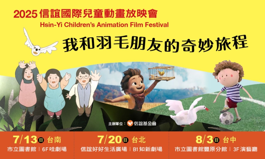 邁入第17屆的「信誼兒童動畫獎」,延續「讓好動畫與孩子相遇」的初衷,今年暑假再次推出「國際兒童動畫放映會」,以全新主題「我和羽毛朋友的奇妙旅程」串起動畫教育與情意學習,自7月13日起於台北、台中、台南三地巡迴上映,陪伴親子在酷夏中展開一段跨越語言和文化的感動旅程。