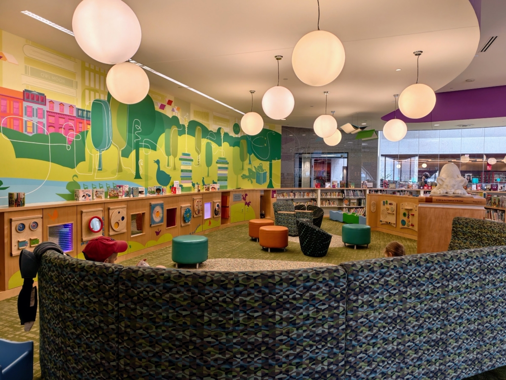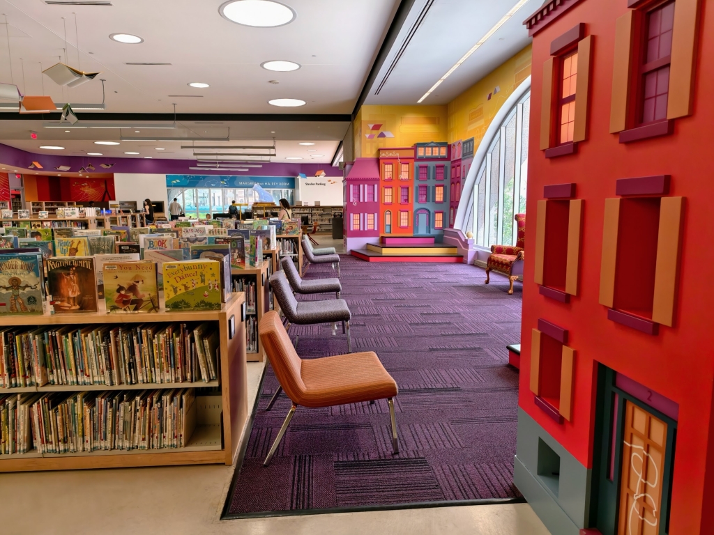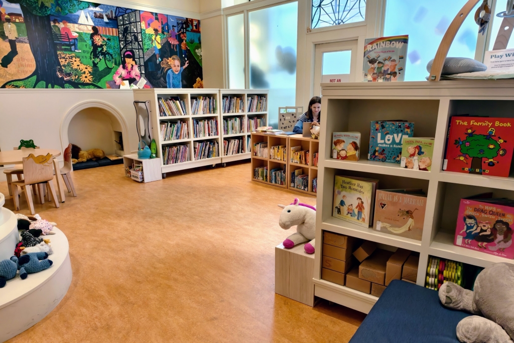 2022 年整修後,圖書館全新打造了一間兒童圖書室,專為六歲以下幼兒設計,位於一樓接待櫃檯後方左側,方便家庭與推車進出,分隔的圖書室也讓親子不用擔心打擾到其他圖書館使用者。室內空間明亮、擺設溫馨可愛,有圓形閱讀桌、低矮書架、地墊遊戲區和小型水族箱。最吸睛的是由當地藝術家、凱迪克銀牌獎得主 Ekua Holmes 所創作的拼貼壁畫,描繪多元族裔的孩童在閱讀與玩耍的畫面,展現圖書館對多元文化的重視。
