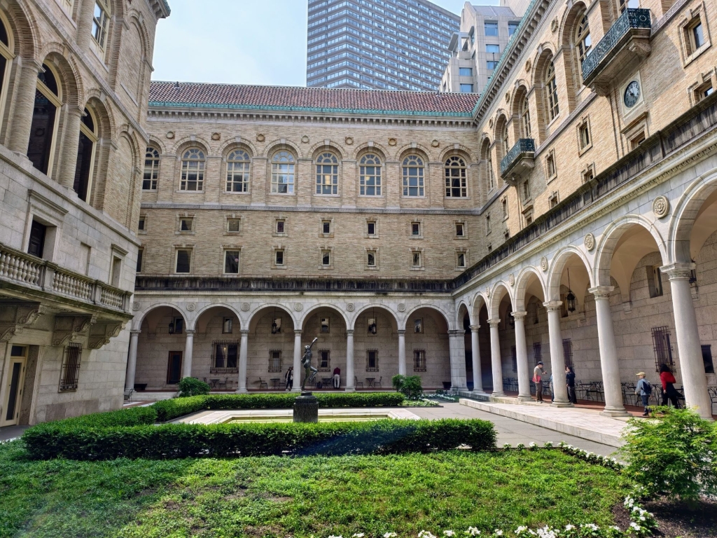 中央館(Central Library in Copley Square)座落於市中心的柯普利廣場,由兩棟風格迥異的建築組成:1895年開幕的麥金館(McKim Building)與1972年增建、2016年重新整修的波約斯頓街館(Boylston Street Building,又稱Johnson Building),兩棟建築共同見證了波士頓從十九世紀走向二十一世紀的城市文化變遷。