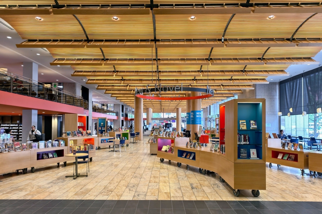 同樣位於新館二樓的青少年中心,專為國、高中的孩子設計,融合閱讀、科技與社群互動,設有作品牆、遊戲機與創客空間等,鼓勵青少年在圖書館裡探索興趣。最特別的是館方還設計了「Tween Time」活動,由館員帶領8–12歲孩子從兒童圖書室走去探索青少年中心,體貼年齡交界讀者的需求。