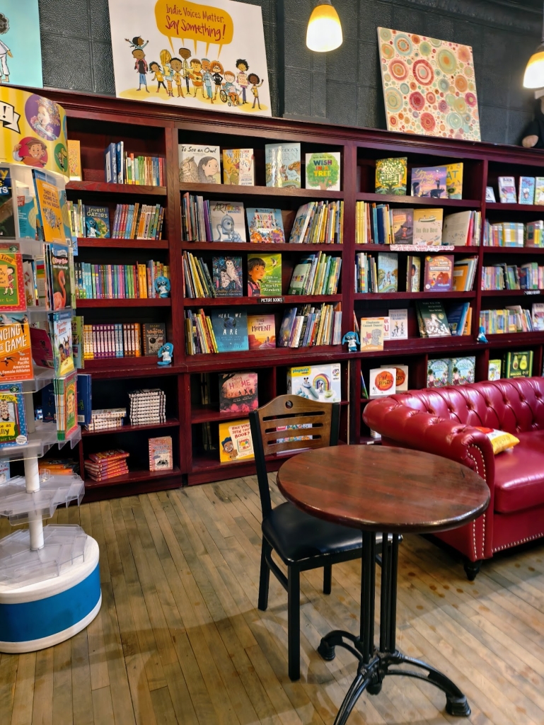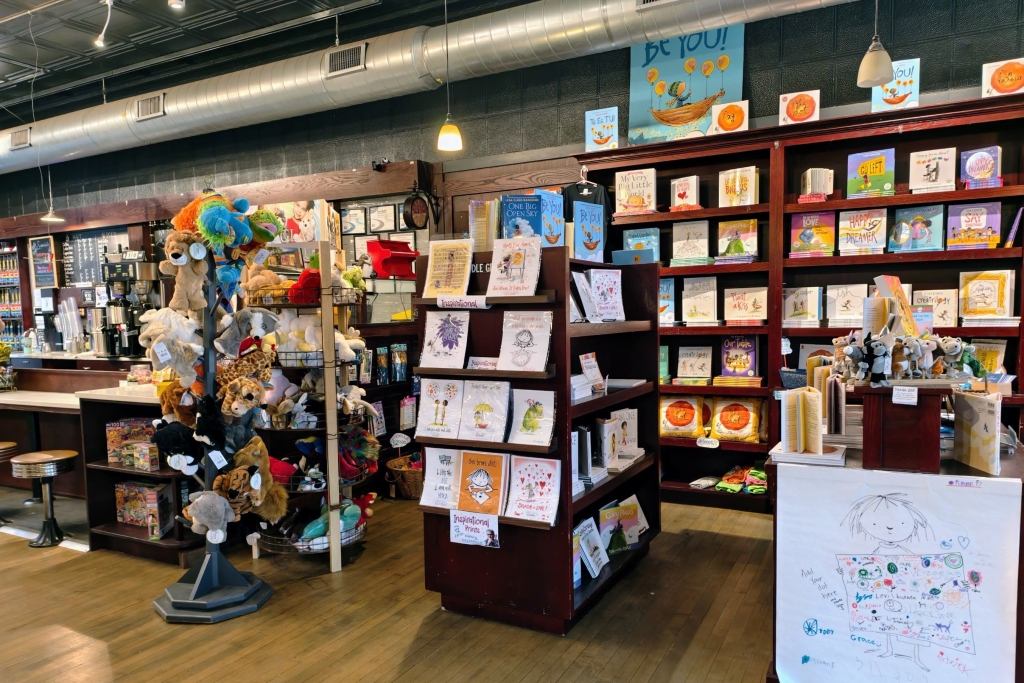 走進書店,原木地板與原始的錫製天花板營造出溫暖氛圍,書架上陳列著繪本、童書、玩具與文具,當然也少不了彼得・雷諾茲的親簽書與複製畫販售。店內還有一間小巧的咖啡吧 Mocha Java Café,提供現煮咖啡與簡單糕點,讓家長可以悠閒地一邊品味咖啡,一邊陪伴孩子挑選書籍或參加活動。書店的座位區有舒服的沙發和桌椅,是在地居民日常聚會的地點之一。