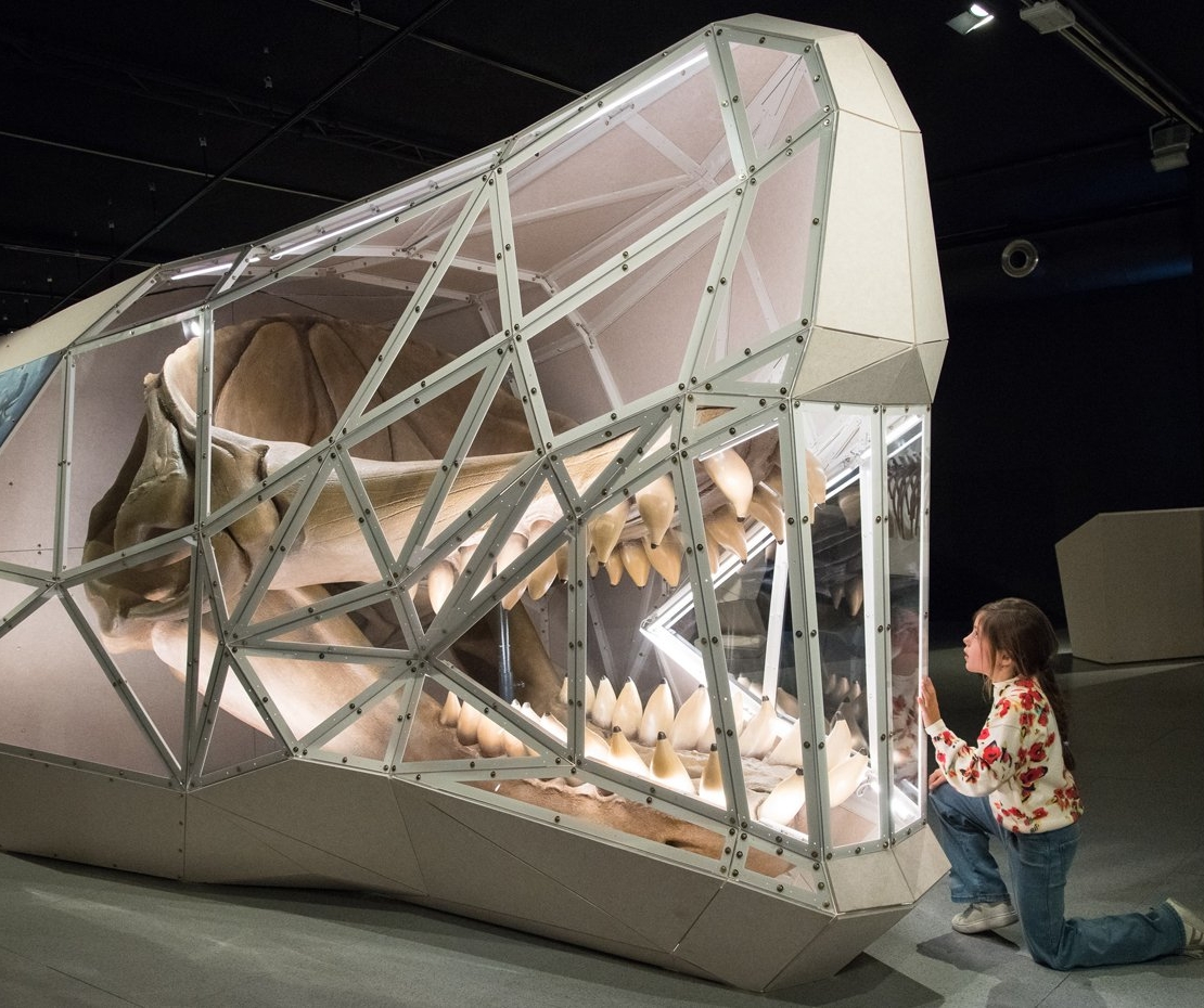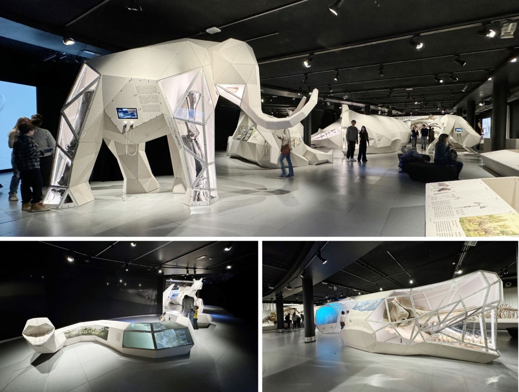 展覽名稱《GIANTS》不只是對於動物尺度的形容,更象徵著自然中不斷演化與適應的力量。策展團隊以敘事方式引導觀眾穿梭在一個跨越時空的巨型動物世界中,並以視覺張力與沉浸式空間設計,吸引不同年齡層觀眾主動參與、駐足與討論。這樣的呈現方式,與傳統科學博物館的展覽邏輯大不相同:不再僅僅是「看復原的展件+讀說明牌」的知識導向,而是透過更沈浸的展示設計,帶來一種既詩意又直覺的教育性經驗。