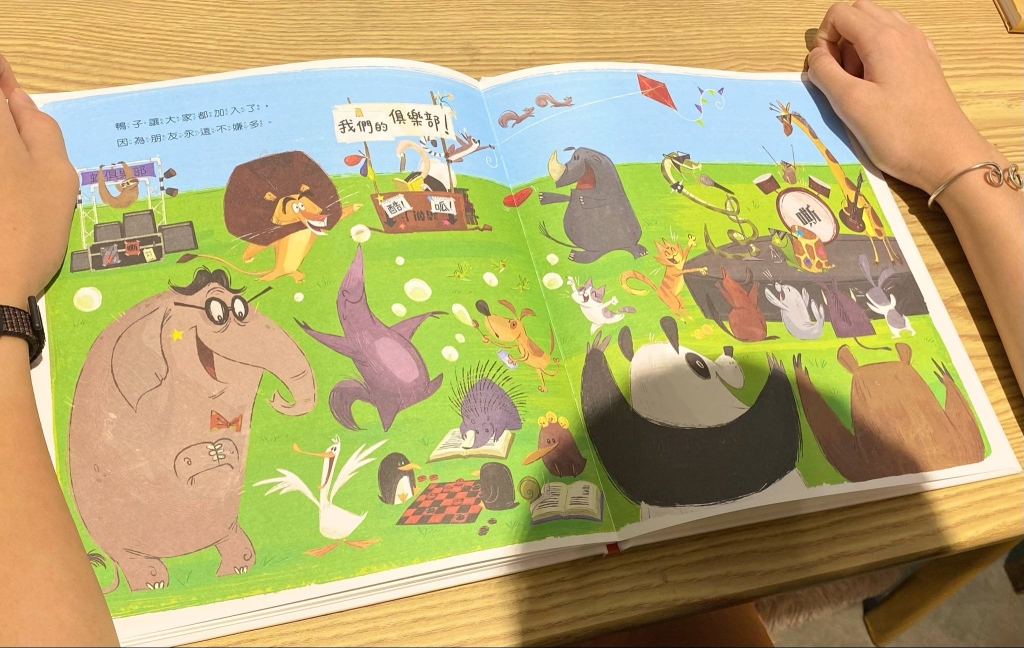 和媽媽一起讀《我可以加入你的俱樂部嗎?》時,媽媽說我小時候很像書裡那隻戴眼鏡的小鴨,總是很主動的到處交朋友,常看到我遊走在人群裡,跟每個人都有話聊,還會和好朋友組成小團體,下課去操場尋寶、抓蟲,在書店裡也有各種和我有相同興趣的好朋友,就像加入了很多個俱樂部,書裡小鴨蹦蹦跳跳的想加入大家的俱樂部,卻屢遭拒絕,大家對成員都有不同的條件和限制,小鴨無法符合每個俱樂部的入會條件,乾脆自己設立一個俱樂部,一個沒有任何限制的俱樂部,結果他的俱樂部變成了森林裡最受歡迎的俱樂部,大家都搶著要加入,看得我都想去申請加入了,我覺得交朋友就應該這樣,包容彼此的不一樣,學習欣賞彼此的優點,不應該一開始就設下許多限制,反而會變成我們發現許多有趣事物的障礙!