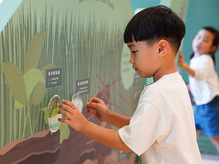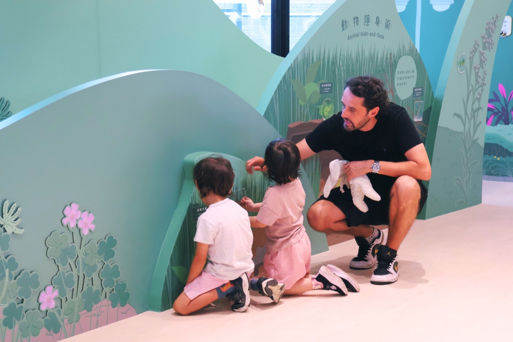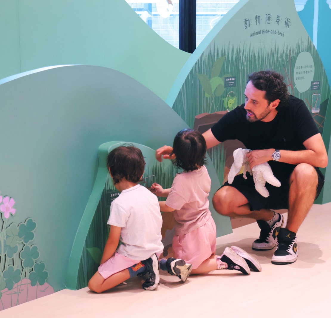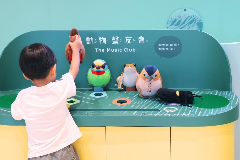 展場設有多項互動式教具,包括透過磁鐵遊戲讓孩子理解動物保護色概念的「動物隱身術」;可自由組合6種動物與自然聲響,創造屬於自己交響樂的「動物聲友會」;以觸覺探索箱感受不同動物皮毛與外殼質感的「這是誰的衣服?」;以及激發創意與想像力,可拼貼出獨特海洋生物的「奇妙的海洋世界」等,讓孩子可以透過遊戲自然學習。