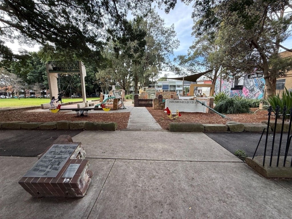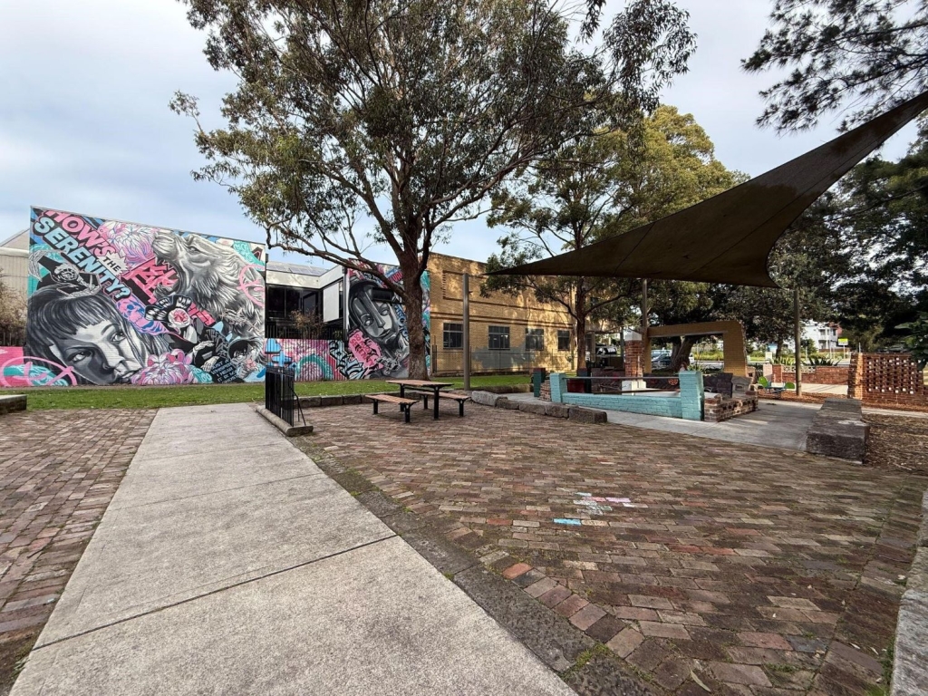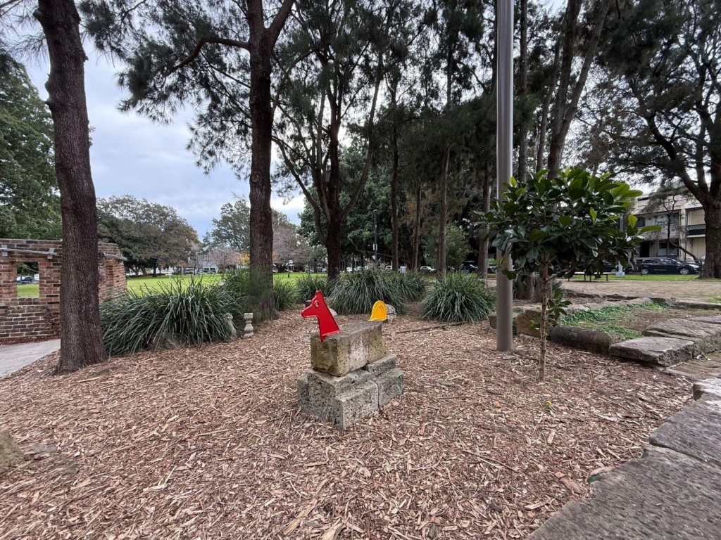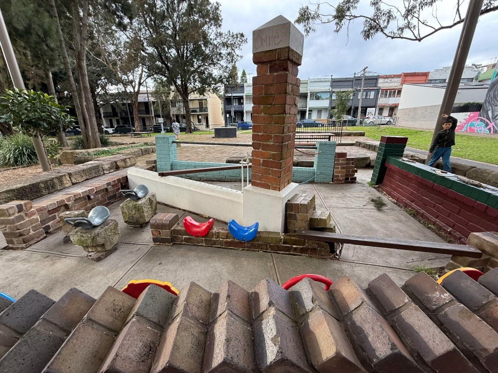 按照麥可完成時間順序來看,我實地參訪的作品,分別是 2020 年在 Simpsons Park 一角的 St Peters Fences(暫譯:聖彼得斯的圍牆,位在雪梨聖彼得斯)、2022 年第一季在 Pioneering Memorial Park 一角的 Pockets Park(暫譯:口袋小公園,位在雪梨萊卡特)和同一年第四季的 Rocks on the Wheels(暫譯:輪子上的大石頭,位在墨爾本南岸)。