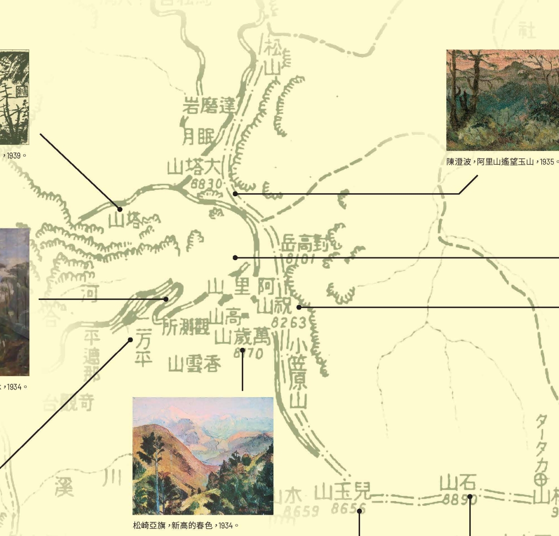 在此浪潮下,無數臺灣本地或遠從日本而來的人們莫不前來朝聖阿里山,他們各有不同的身分與目的,但其中最特別的,莫過於將旅途經驗轉化為繪畫作品的畫家們。