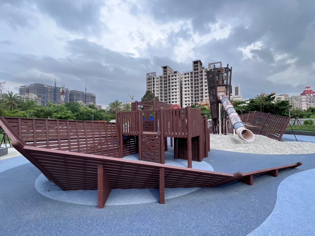 遊具設計規劃「船長奇航」、「水戰綠洲」、「捕魚遊戲塔」等海洋主題遊具,設計結合航海冒險、捕魚文化與海洋親水等元素,充滿海洋風情,量身訂製具地方特色的共融友善全齡式公園。