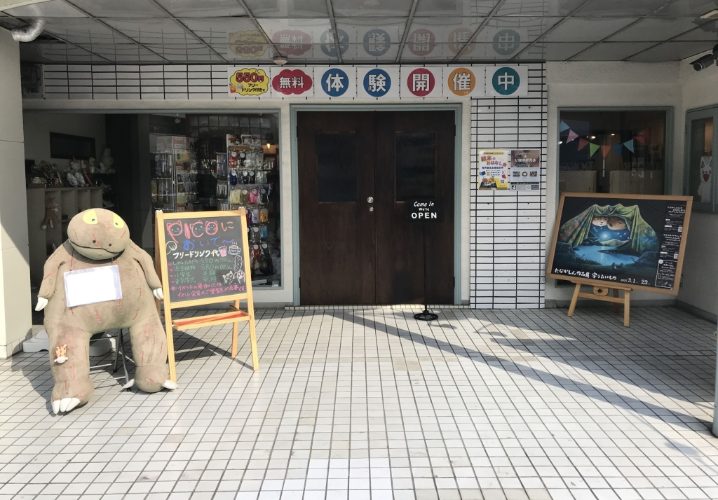 「繪本沙龍PICO」位於大馬路旁,店面寬廣,不過招牌相當低調,要不是門口放著一隻很巨大的霸王龍玩偶,真的不太確定是不是繪本書店。這間複合式繪本沙龍是由前白楊社社長奧村傳先生與Live Enterprise合作創辦,不僅是繪本書店,也是親子咖啡空間。