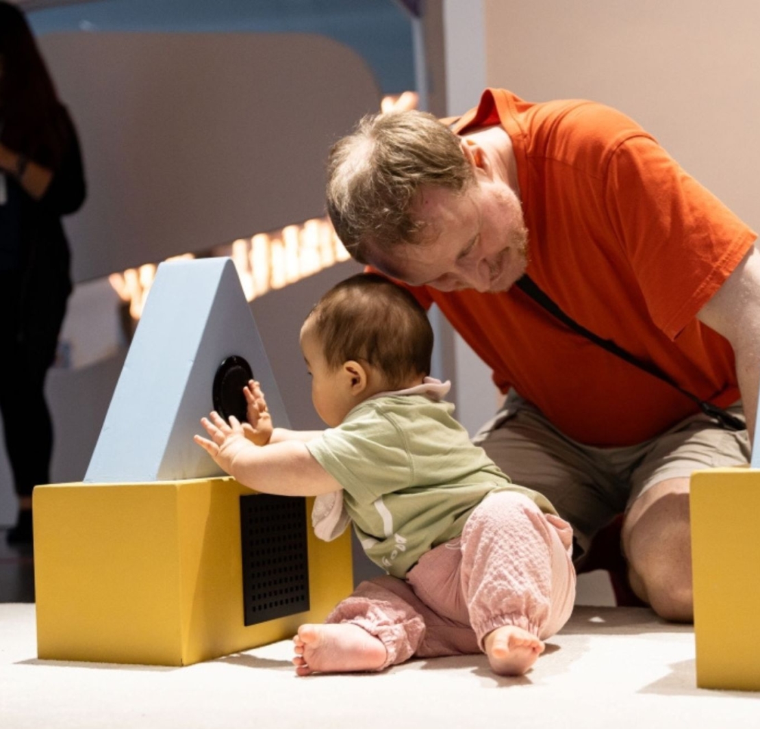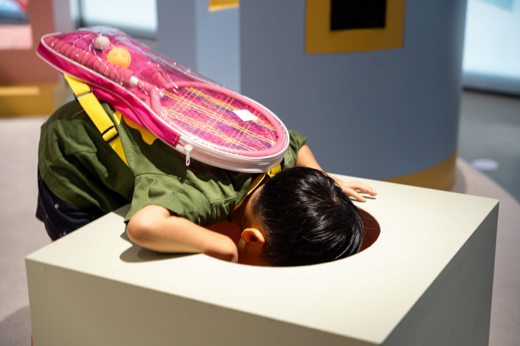 「砰!波波波-聲音的小宇宙」結合聽覺、視覺,試圖通過藝術家的創作,引領想像聲音、探索聲音,喚醒感官的多層次體驗,讓24小時待命的耳朵不懶惰!噓!請聽聽,是誰在發聲呢?
