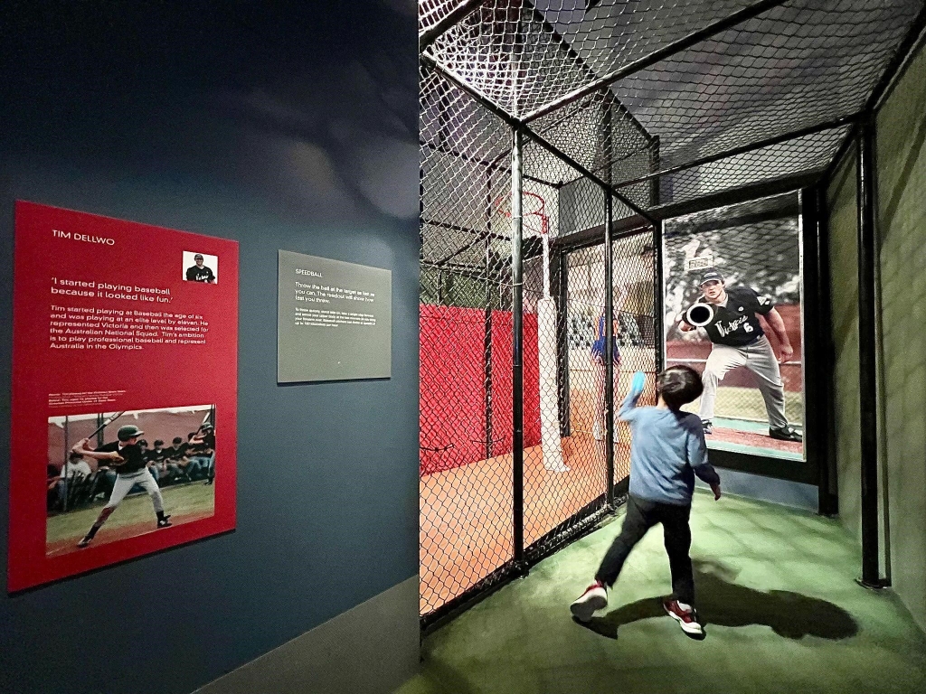 這裡不是叫你乖乖站著看展,不是單純陳列運動器材,或擺出所有體育賽事金獎名人給人瞻仰,而是邀請你整個人動起來:可以衝刺、跳遠、玩平衡板、測反應力,還可以踩上越野單車、躺上帆船、坐上競速輪椅,跟螢幕裡的短跑選手、足球隊員或滑雪友伴互動,看螢幕裡自己的骨頭怎麼移動或轉動。