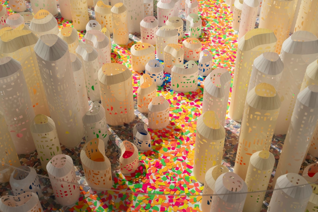 莊惠琳的《細胞城市》系列作品將現代科技中的顯微視角與城市景觀融合,透過幾何形狀轉化為有機細胞的形象,表現微觀世界中的城市景觀回應張永村老師《文明的躍昇》系列作品。
