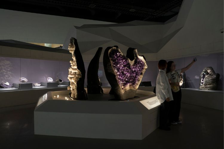歷時5年籌劃,國立自然科學博物館即日起隆重推出臺灣首座大型礦物常設展《大地瑰寶》,展區分為3廳、近600坪,匯聚本館30餘年珍稀礦物蒐藏,現場精選1700餘件礦物標本,包括巨大鐘乳石群、隨紫外線不同波段綻放絢麗光彩的螢光礦物、巨大心型的紫水晶洞、臺灣獨有寶藏北投石,以及曾為臺灣創造經濟奇蹟的九份金瓜石、自然金和豐田閃玉,亦有人類首度成功登月,由阿波羅11號帶回的月岩,規模浩大,每件展品皆有精彩故事,可完整呈現礦物從地球孕育、環境變遷到人類應用的壯麗篇章。
