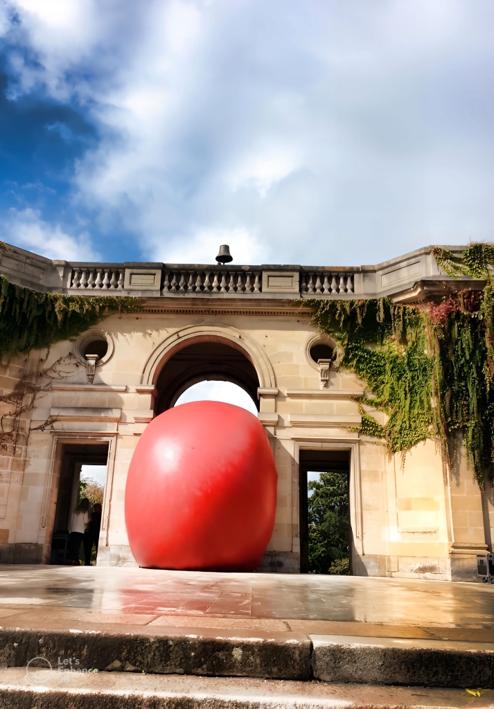 沒遇見紅色小瓢蟲,倒是看見了一顆卡在拱門的大紅球。那是美國藝術家Kurt Perschke發起的一項大型移動式街頭藝術裝置,也曾卡在台灣許多城市角落喔!