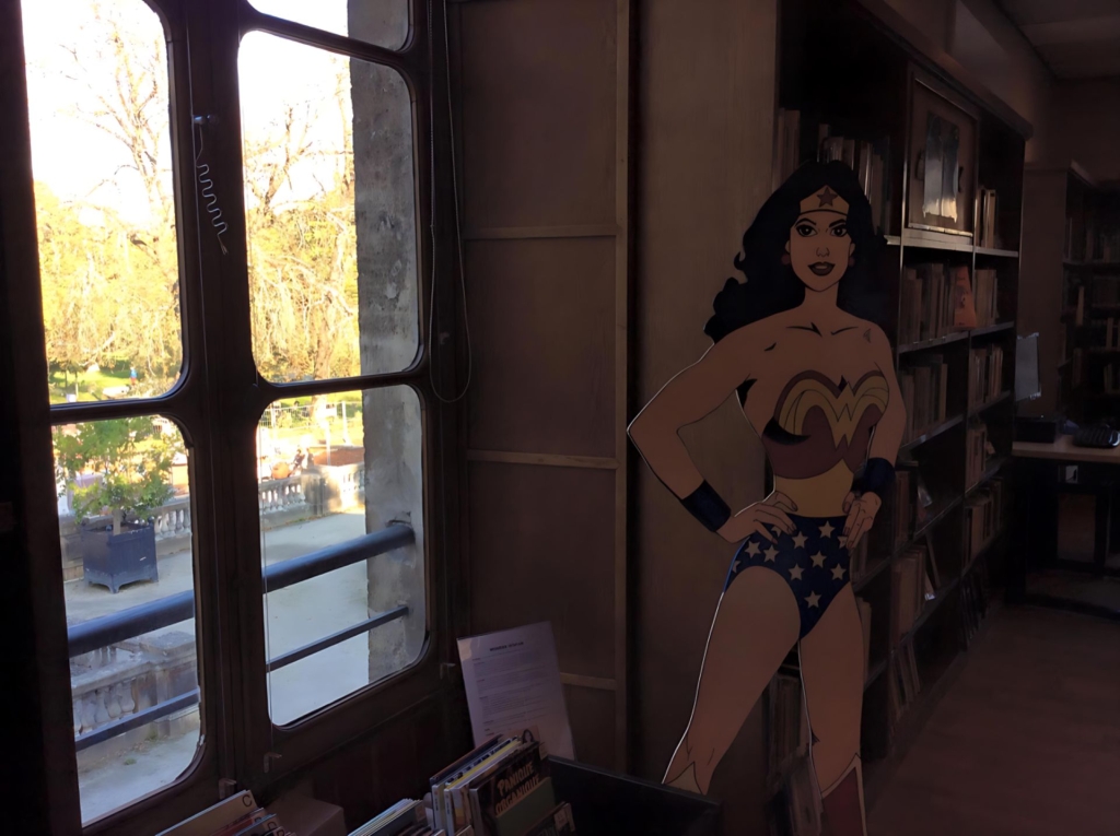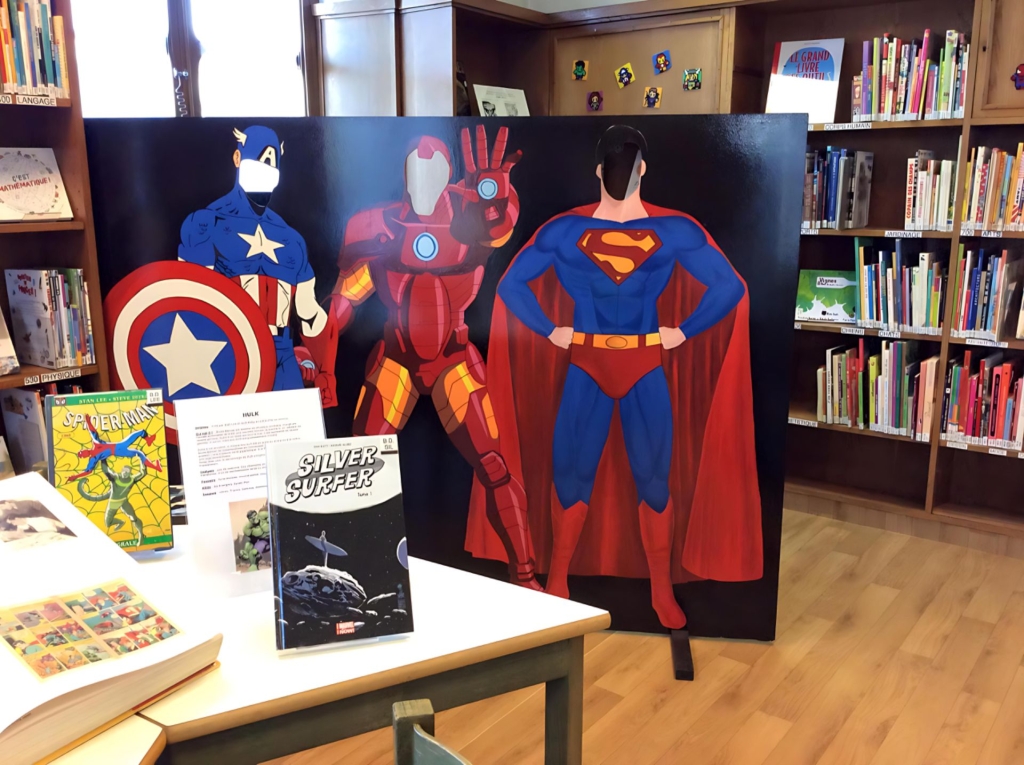 造訪時適逢館方舉辦「La parade des super-héros」(超級英雄遊行)活動。在館內一隅擺放了幾幅臉部挖洞的立牌,從穿著、姿態研判,有美國隊長、鋼鐵俠、超人,還有神力女超人站在窗邊。