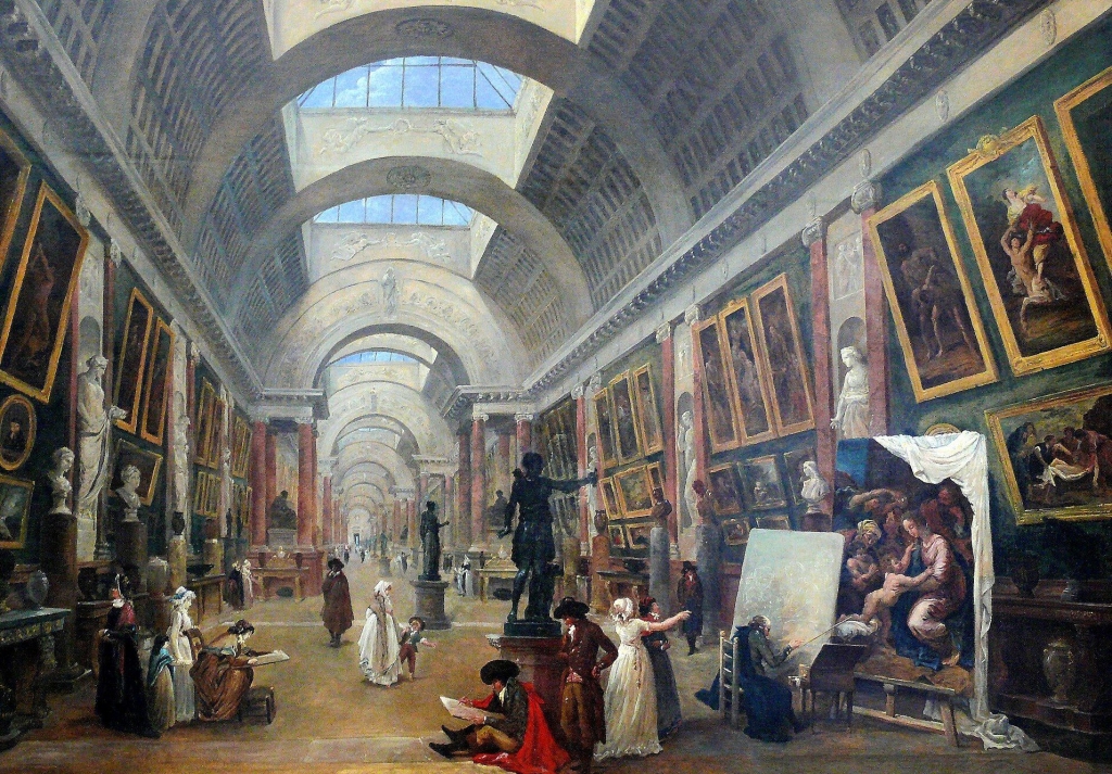 我上次去羅浮,雖也走在這條既定路線上,卻沒有去見蒙娜麗莎,而是趁老公孩子排隊時,來回穿梭Salon Carré和大長廊,幻想是否能夢回過去,因為這裡正是藝術展覽重要發源地!