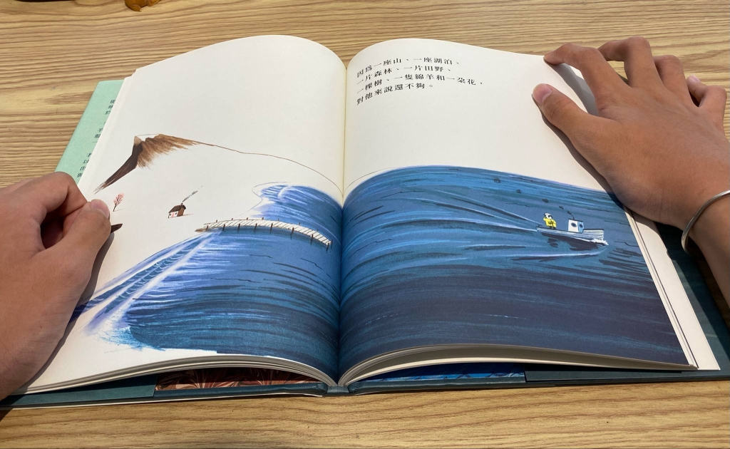 這次也想和大家讀讀幾本可以好好思考和討論的繪本,一起想想裡頭藏著什麼能讓心富足的故事秘方,我還小的時候曾經讀過奧立佛・傑法創作的《福斯多的命運》,福斯多是一個覺得他擁有一切的人類,他在旅程中遇見的花、綿羊、樹,經過的田野、森林和湖泊,都聲稱是屬於他的,被他頤指氣使的萬物靜靜看著他跺腳、發怒,最後因為自己的無知沈沒海底,讀了很多次我才漸漸明白,人類常常以為自己主宰萬物,以為是世界的中心,傲慢又貪婪,最後往往會因此自食惡果,山說:「我是自己的。」海說:「你無法擁有我。」我們可以互相陪伴,但都是自由的。