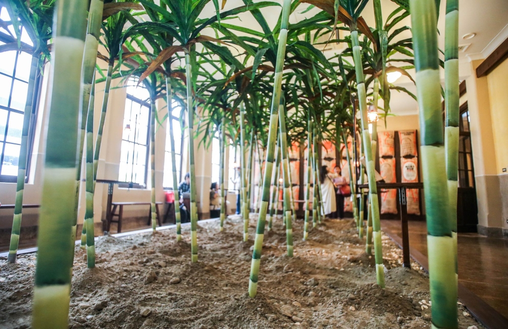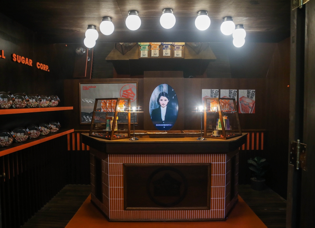 「全糖株式會社」以倒敘模式、從銷售端開啟敘事,以互動體驗及場景再造為一大特色。入口處將古蹟建築化身為復古菓子鋪櫃台,民眾可親身進入櫃台,沉浸式體驗感受經營菓子舖的樂趣。