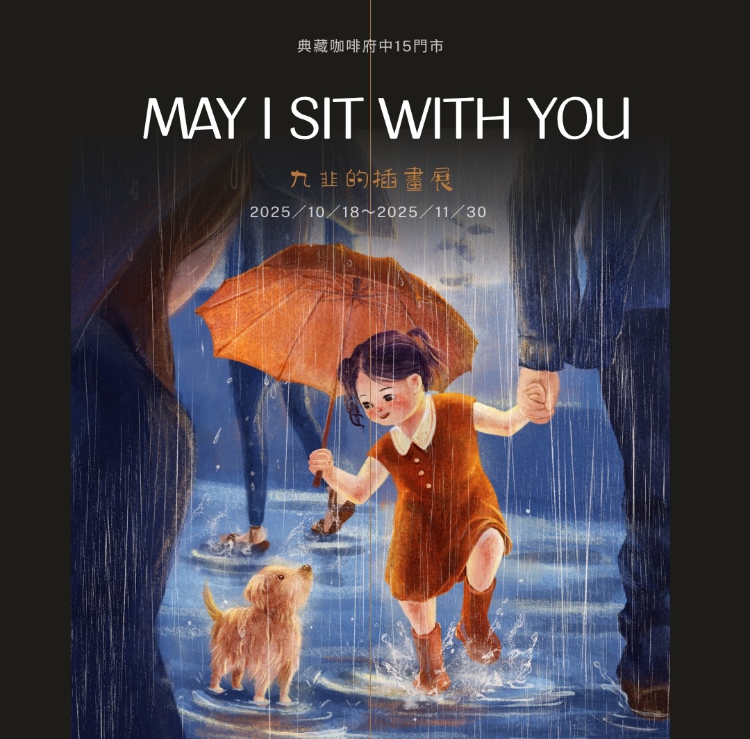 進入深秋初冬的十月下旬,典藏咖啡館府中15門市由插畫家九韭帶來插畫展「MAY I SIT WITH YOU? 」,用畫作陪伴咖啡館的旅人們渡過片刻的咖啡時光。