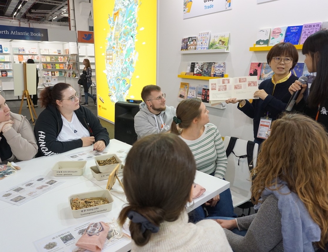 今年金鼎獎得主《神奇漢藥房》繪者陳芊榕首開先例,自費赴德參加本屆法蘭克福書展,並在台灣館舉辦兩場漢方香草包工作坊,現場座無虛席。她透露,多虧《鬼地方》作者陳思宏鼓勵,她才勇敢踏出這一步,主動聯繫文策院,如願在書展舉辦活動。