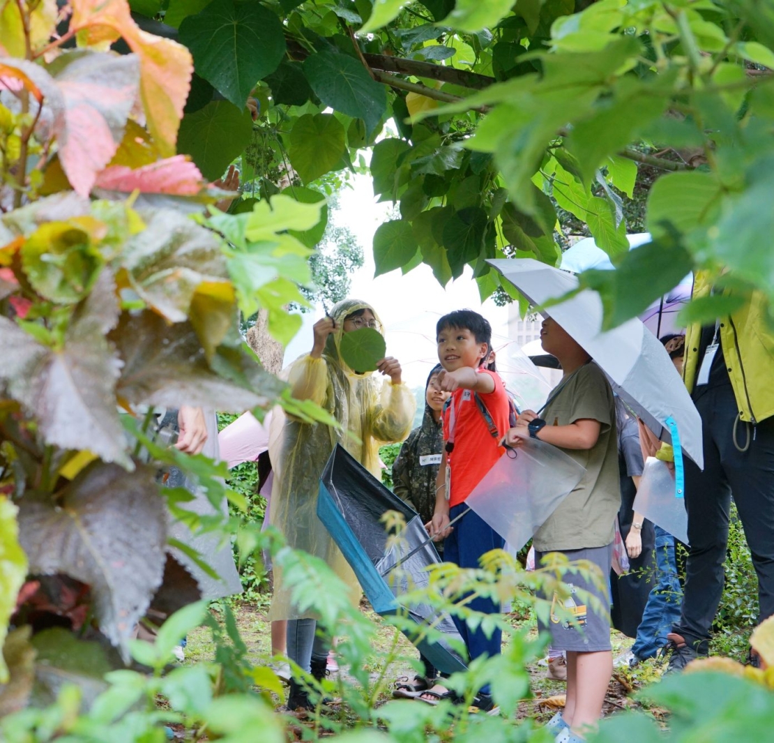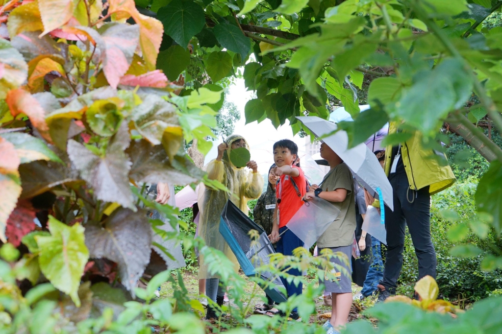「綠之城」的活動則與身體更靠近。有孩子貼著葉片說:「這片葉子好香。」這是最直接的感官,也是最真誠的審美;綠意在孩子的世界裡不需要詮釋,它天然地成為「被喜歡的事物」。