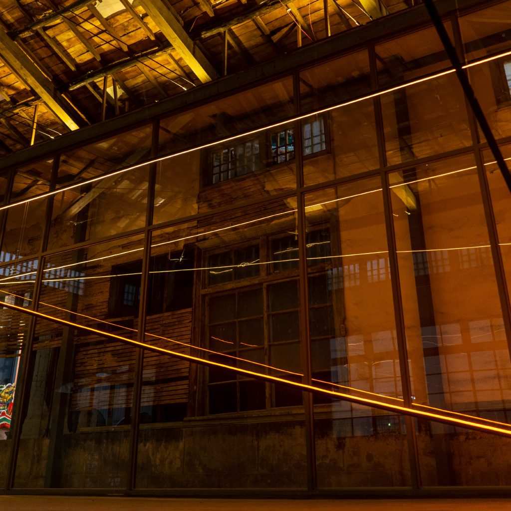 舊建築的精神化作「金色」的力量,賦予在老屋的新舊組件中,展演物件如建築圖般精確的線條,將原本複雜的建築結構與組件簡化、切割,並組構成新的「一半」三維空間。整修的建築過程猶如城鎮的縮影,它所散發的金色光芒,更是居民與土地互助,以及新的能量注入相互碰撞結合的精神象徵;同時,也企圖追問「老屋新存」的意義,在時空的軸線裡它的過去、現在與未來中持續運作與發酵。