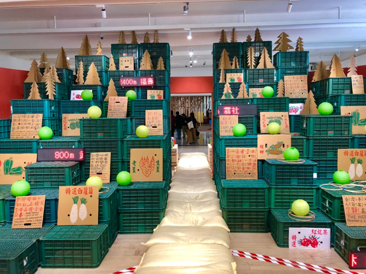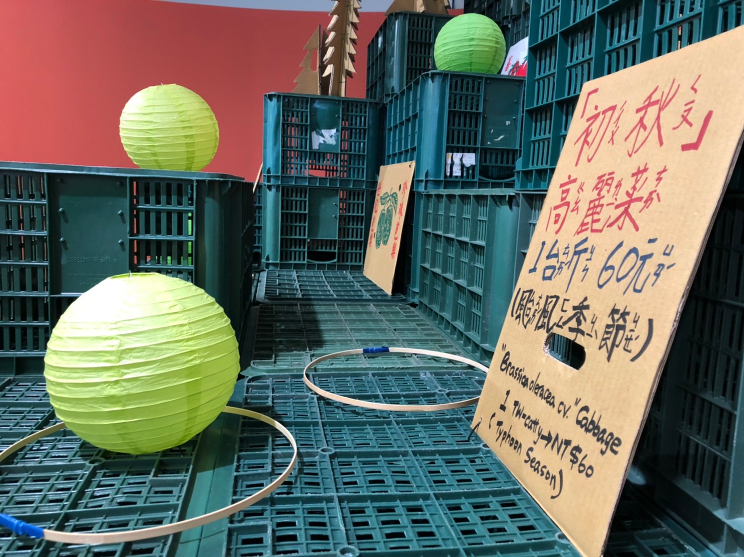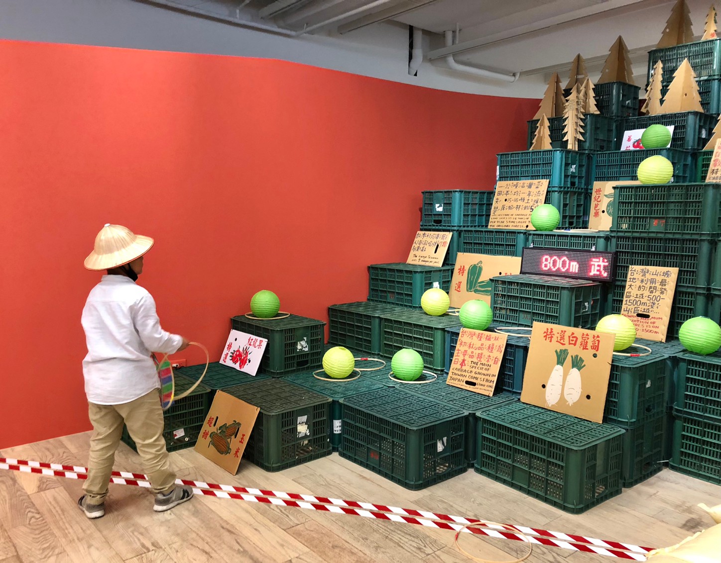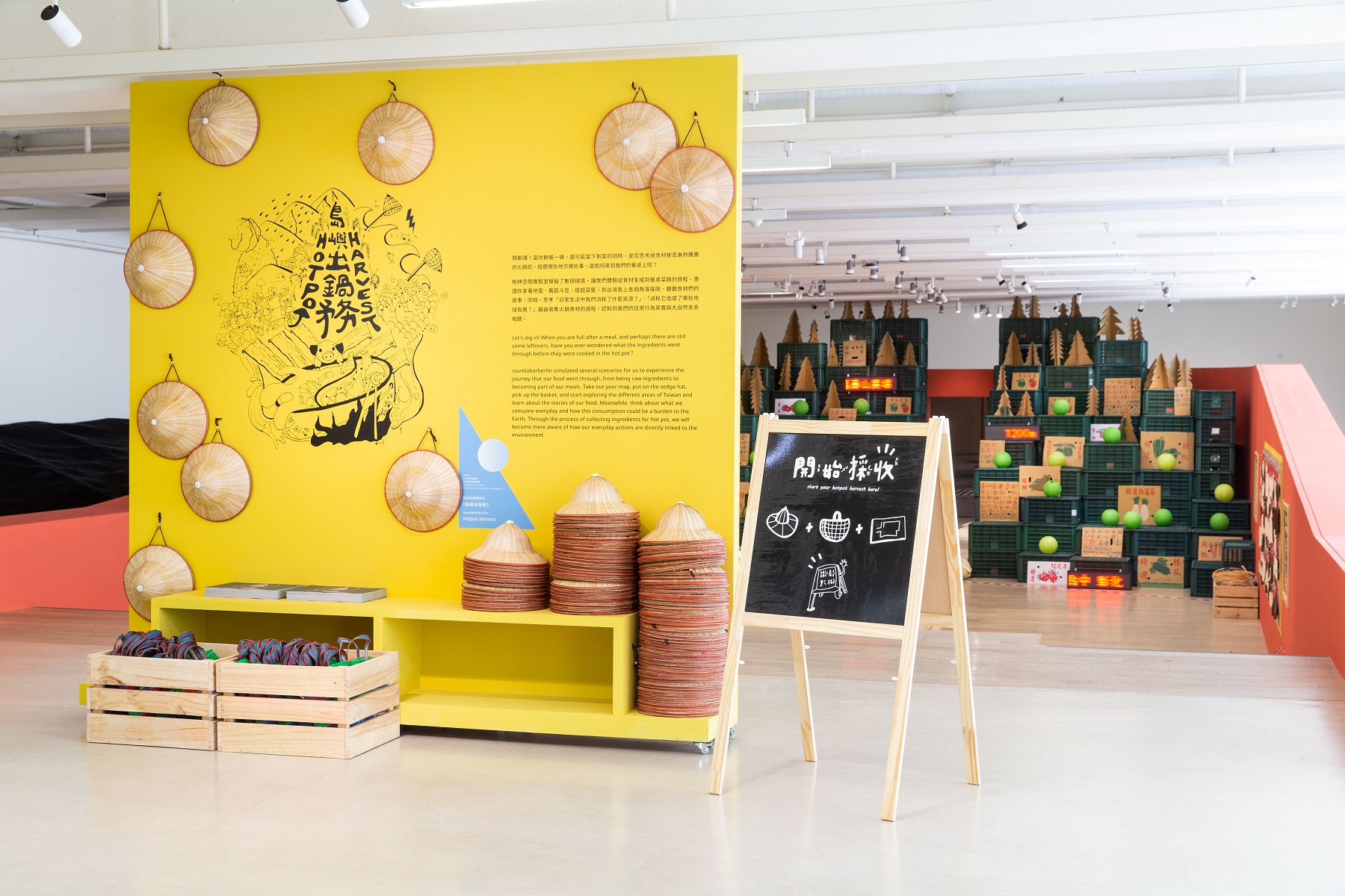 映入眼簾的是由柏林空間實驗室設計的《島嶼出鍋務》展區,在這裡請小朋友把斗笠帶好、茄芷袋(菜籃)拿好,一起出發採收星球上的動植物囉!