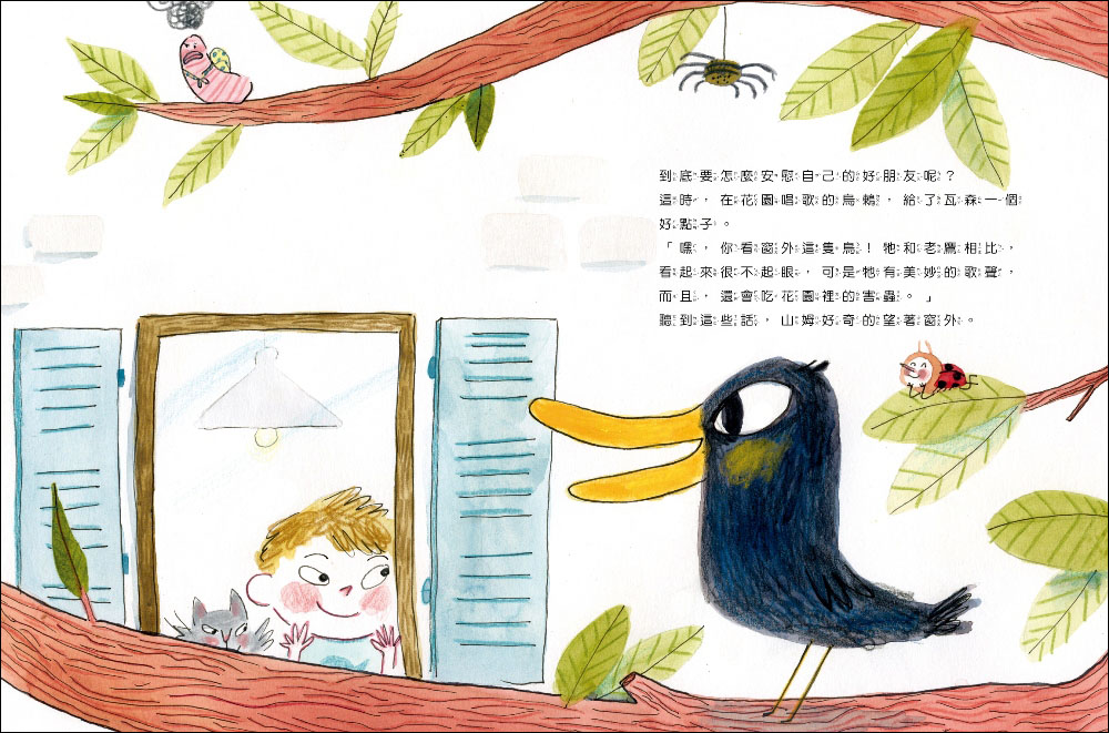 「嘿,你看窗外這隻鳥!牠和老鷹相比,看起來很不起眼,可是牠有美妙的歌聲,