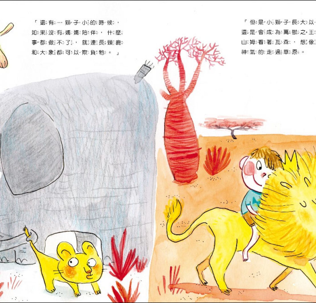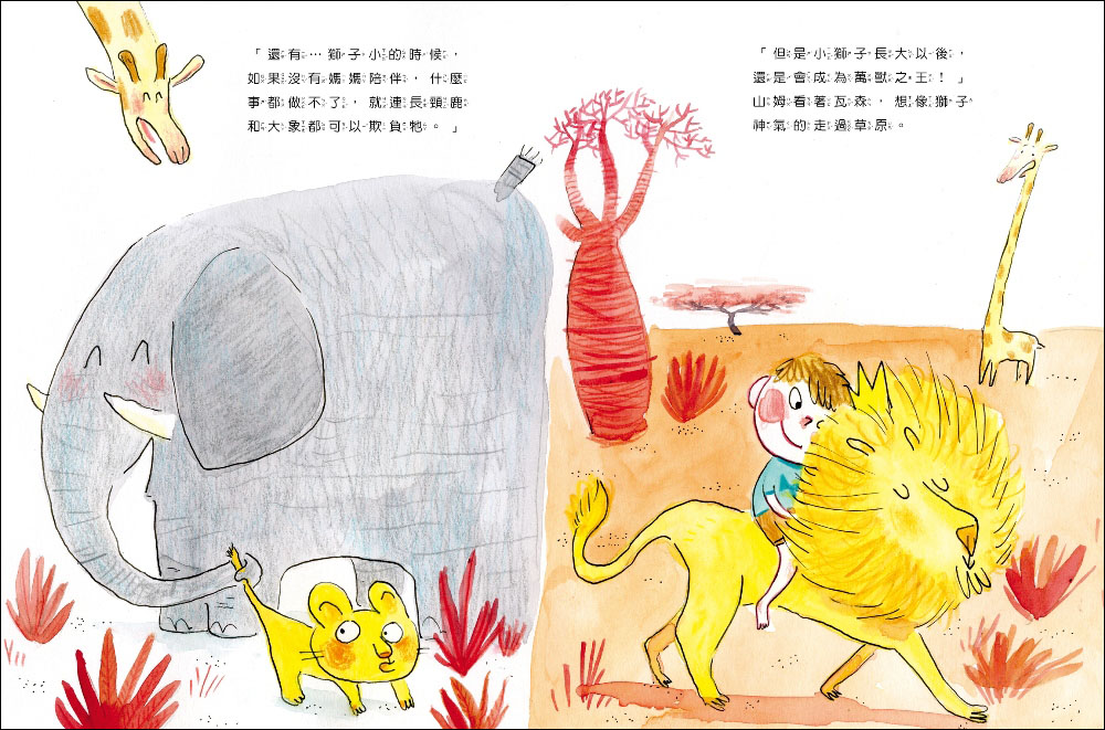 就連長頸鹿和大象都可以欺負牠。但是小獅子長大後,還是會成為萬獸之王!」