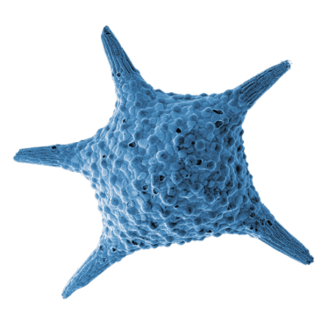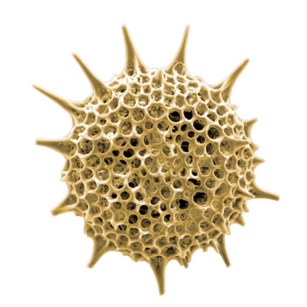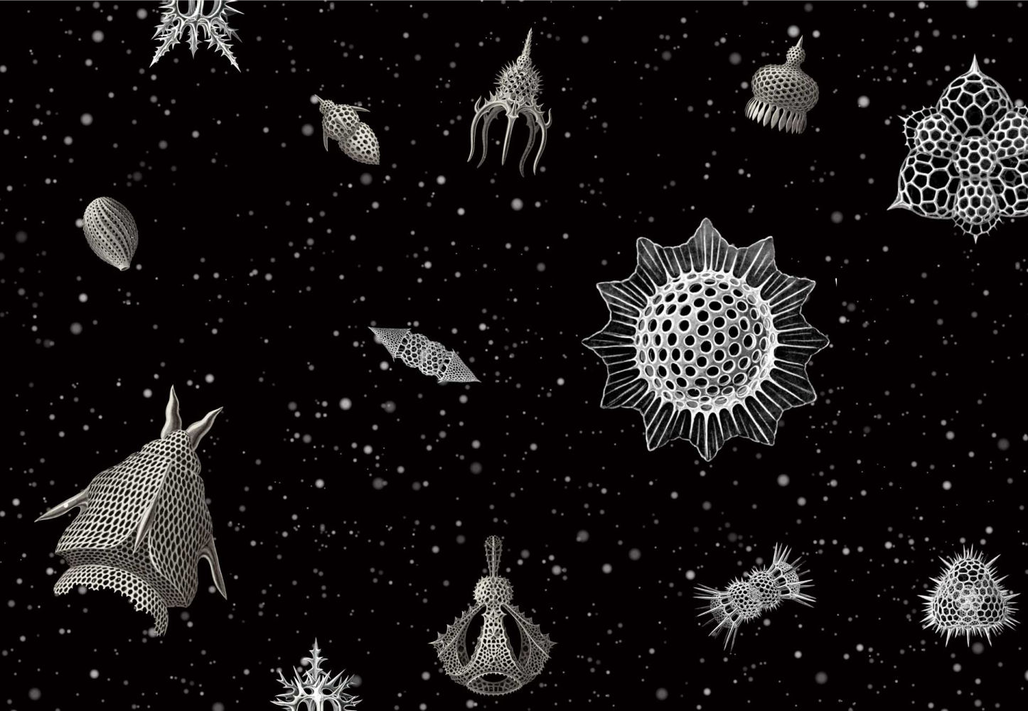 放射蟲擁有精巧細緻的骨架, 整體結構呈現輻射對稱的幾何造型,常被藝術家或設計師運用在各自的創作中。放射蟲與有孔蟲同是原生生物,原生質儲放在中心囊,軸狀偽足或絲狀偽足由此伸出,矽質骨架是由細胞膜分泌矽膠後,再由偽足協助建造而成,每一個體都獨具美感。