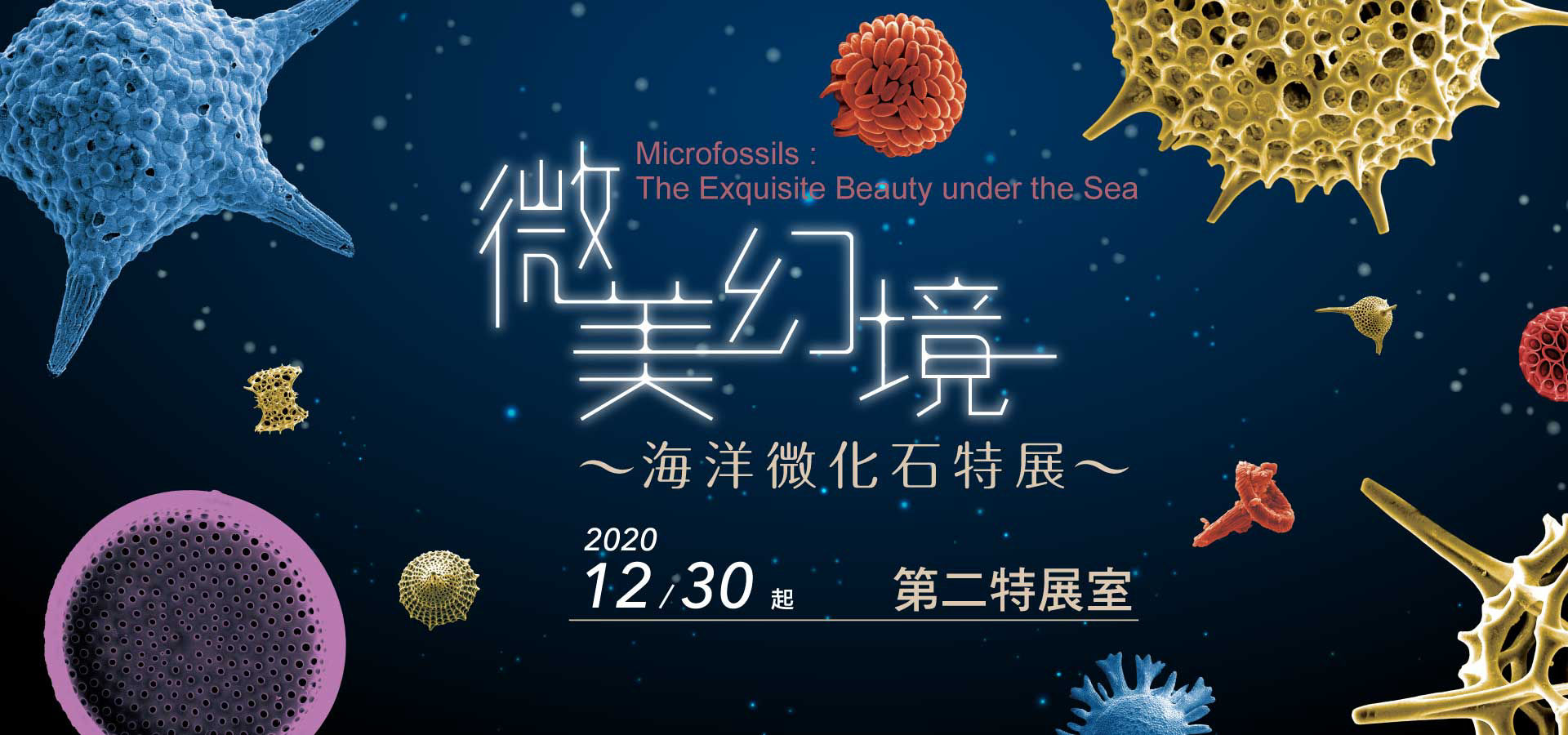 「微化石美術館」展區介紹有孔蟲、放射蟲、矽藻、鈣板藻等4大類海洋微化石,策展團隊細心以淺藍色代表有孔蟲、黃色代表放射蟲、紫色代表矽藻、紅色代表鈣板藻,民眾參觀時可以欣賞其獨特的幾何造型,以及形態的多樣性。展區還有中山大學慨借的180餘件有孔蟲放大模型,依其棲息於海洋的不同深度陳列於櫥窗中,並介紹在20世紀初歐洲新藝術運動,師法放射蟲結構的建築手法,以及鈣板藻沉積成岩成為地質學白堊紀命名的由來等。