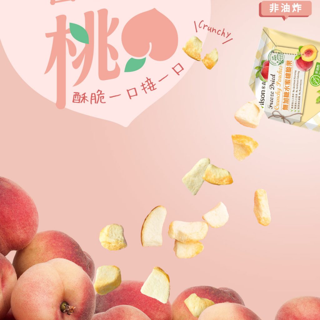 大人小孩都需要的營養水果製作成酥脆口感,小包裝和小脆片,長輩、大人、小孩都適合!今年過年家人團聚,點心就準備「無加糖水蜜桃脆果」,大家相聚「樂桃桃」!