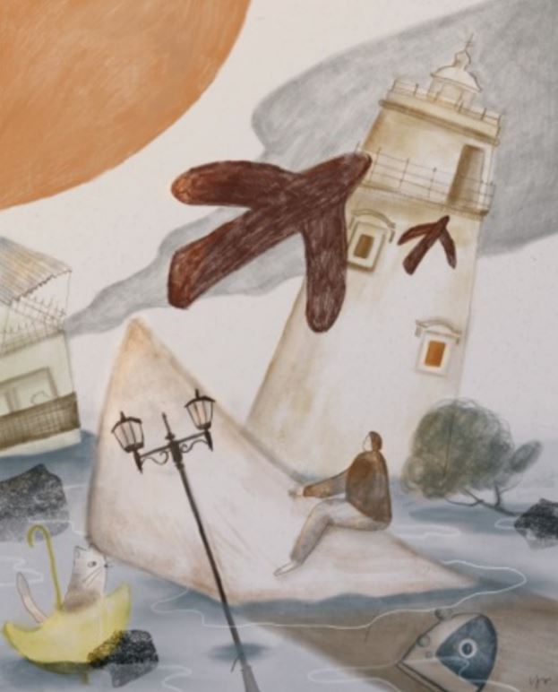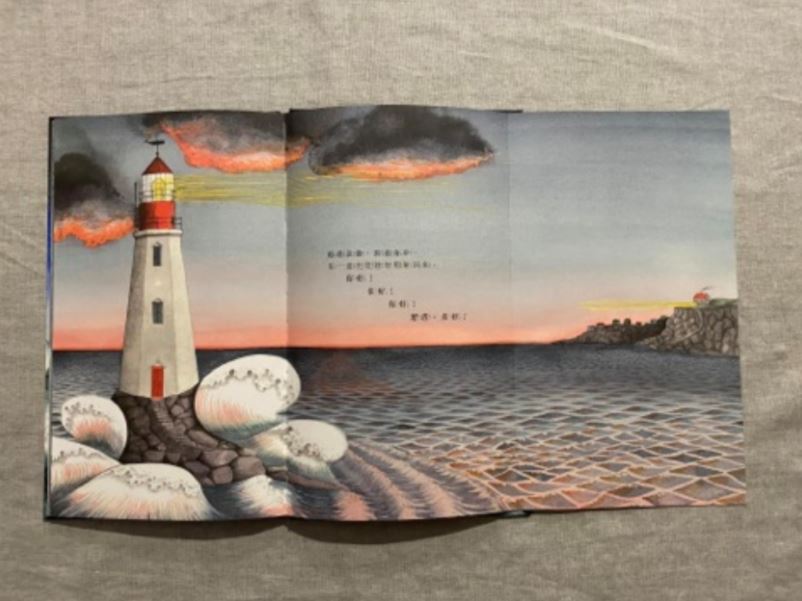 讀到有燈塔畫面的繪本作品,很難不在心中打個雪花星星三角形註記一下。光被記憶,或許來自人的生存本能,光甚至演化成宗教,頓成人類面對大自然的嘆息。燈塔總有許多故事,昔時射進澳門屋舍的燈塔之光,便內化成家的意象。
