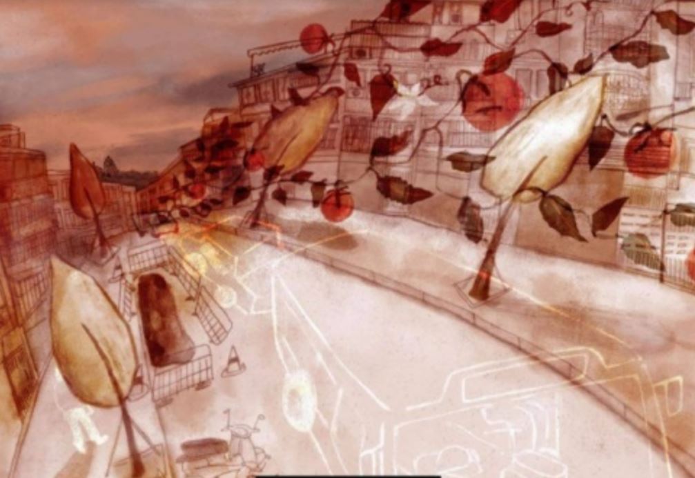 文學創作者常常可以在香港《聲韻詩刊》上看到洋小漫的作品,她出版與發表跟城市有關的作品是毫無邊界的。一輯持續在創作中的明信片《等等我呀,藍帽子!》”Wait for me, blue beanie!”裏頭可見的澳門場景,令人發笑(待之後向讀者介紹)。作為《燈塔Lighthouse》的繪圖師,這張插畫的「澳門感」又更加強烈:米先生購買蕃茄的地方,就是燈塔山腳下的古老華人市集「雀仔園」低矮的城市建築,燈塔和小教堂,仰頭就可望見(當天我們就是從往這條路一直往上走到燈塔)。
