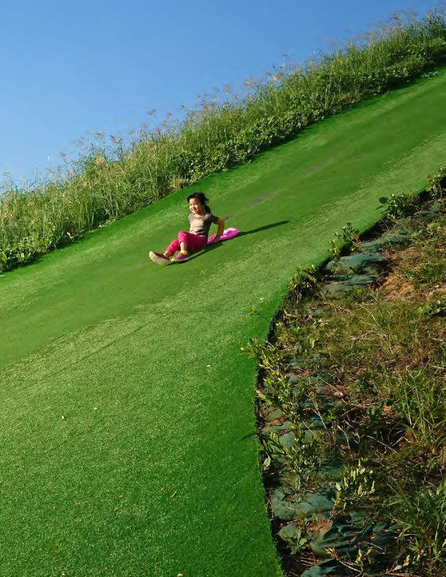 開放的滑草區可以上下奔跑和翻滾,滿足大腦需要放電,身體也需要耗能的需求。同時讓孩子學習使用滑草道具和控制自己的身體平衡與重心,來個完美的愛的迫降。