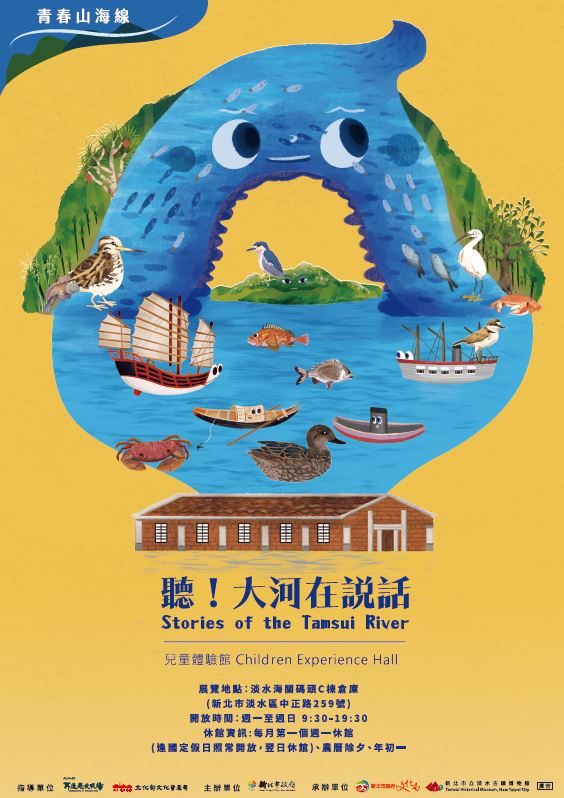 「聽!大河在說話─兒童體驗館」由守護北臺灣多年的河兒─淡水河,邀請大小朋友用肢體、感官體驗,認識她住在淡水的好朋友們!