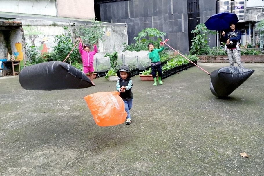 所以,遊戲場可以是漸進式的,不需要給你一個完工的遊戲場,可以是空白、未完工、完工的遊戲場,孩子可以自己選擇想玩的遊戲場去玩。不同的人有不同的需要和不同的階段,有些人可能還會玩回來,都是非常有彈性,可以一直循環,不是單一型態的。例如:在台北長大的小孩,因為被限制久了,所以只會在這種制式的遊戲場玩。反之,在台東長大的小孩,在鄉下狂奔慣了,突然搬來台北,也是這樣到樹林裡去狂奔,台北的孩子看到了,就覺得,哇!這人真酷,可以這樣在樹林裡面玩。又比方說,一個視障人士,來到一個很黑的環境依然游刃有餘、非常自在,因為他本來的環境就是如此。在公園也是如此,每個人都可以發揮自己的特長,找到適合自己玩的角落。
