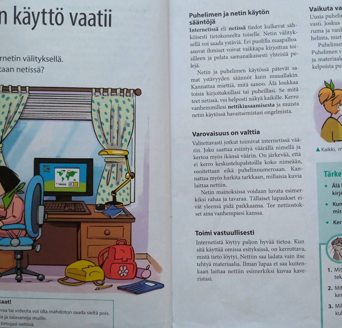 為幼兒編寫的教材從童話故事出發,讓孩子思考什麼是可相信的,什麼是謊言,並帶領孩子去認識生活中常見的媒體。小學以上的媒體素養教育則是跨領域的課程,視情況融入在各科教學中,例如,在數學課,學生學習了要操控統計數據有多麼容易;在視覺藝術課,學生看到了如何使用修圖軟體對圖片進行修改;在歷史課,對於曾經發生過的假新聞資訊戰進行分析討論;在科學課,學習驗證關於疫苗的虛假信息;在芬蘭語課,讓學生搜尋新聞,嘗試分辨什麼是「事實」與「故事」。媒體教育的目標就是培養積極、負責任的公民,讓學生學會認真思考、核對事實,並解釋與評估日常中所有收到的信息,因此在所有學科中,都應將其視為教學內容的核心部分。