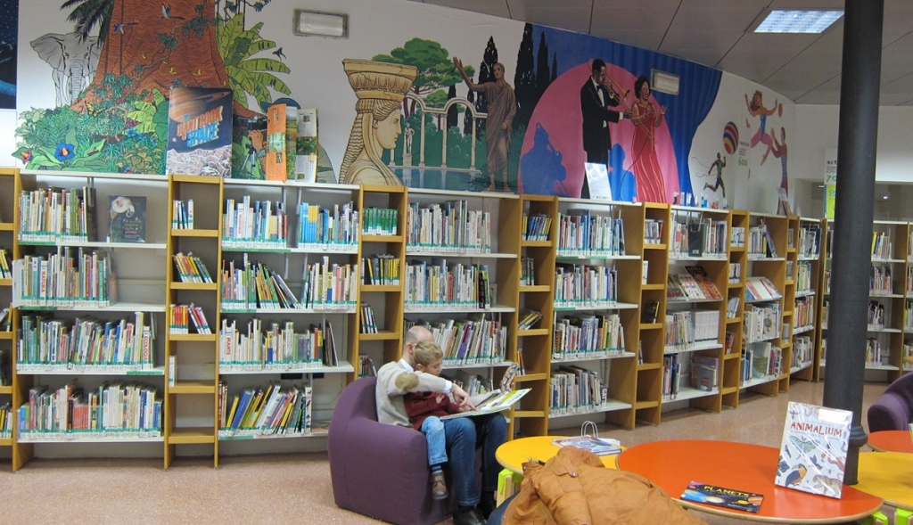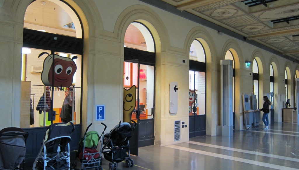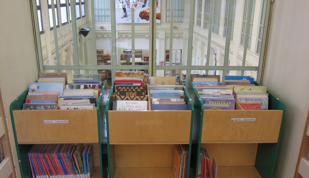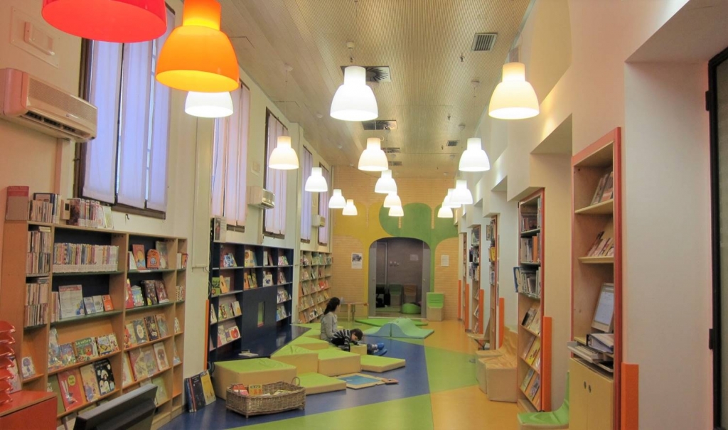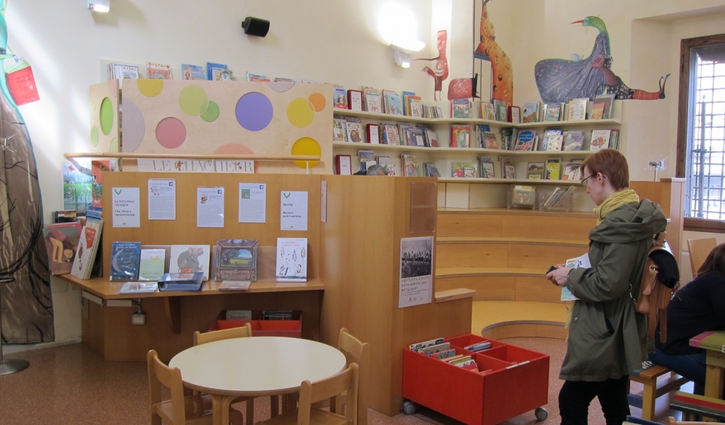 波隆納身為童書版權交易重鎮,Biblioteca Salaborsa的童書區自然不可小覷,總共分成嬰幼兒區、兒童區及青少年區,還有一個空間是專門放波隆納得獎繪本,藏書多達55000冊。因為是古蹟改建,空間有些曲折且大小不一,在規劃上將最容易到達的一樓側廊規劃成嬰幼兒書區。