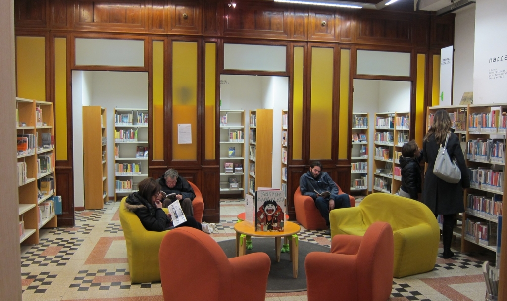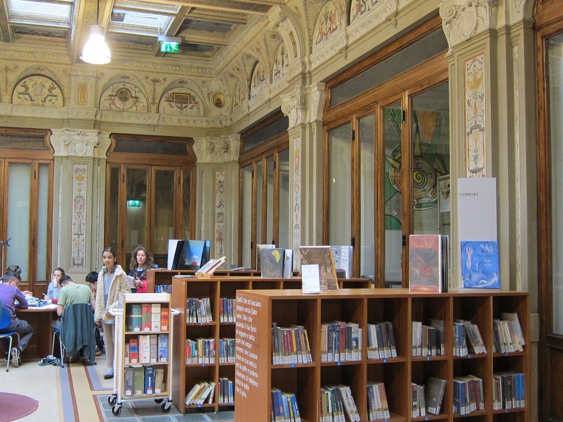 但仔細觀察,還是有很多值得我們借鏡之處,像是利用空間做了分齡設計,用兩個不同樓卻上下連結的房間放特殊館藏,以及前面提到的一樓嬰幼兒書區等。書籍分類簡易明瞭,即便我看不懂義大利文,逛了一圈搭配圖示便可掌握八成。這些並非顯而易見,但對使用者來說是相當友善的設計,也是我們參觀圖書館時可以特別留意的細節。