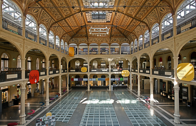 在書展的那幾天,往來的人群穿梭在市中心的波隆那主廣場(Piazza Maggiore),這裡一直是城市發展的中心,發展歷史甚至可以追溯到西元前,波隆納也孕育了世界第一所大學。位於主廣場北側的達古修宮(Palazzo d’Accursio)建築群在過去的幾個世紀中逐漸13世紀末獲得的建築融合在一起,歷經市政廳、銀行等不同用途的更迭,2001年,公共圖書館Biblioteca Salaborsa遷入,建築物前豎立的海神雕像即是圖書館最佳地標。透過圖書館中心的水晶地板還可以看到下面的羅馬時代的遺址。