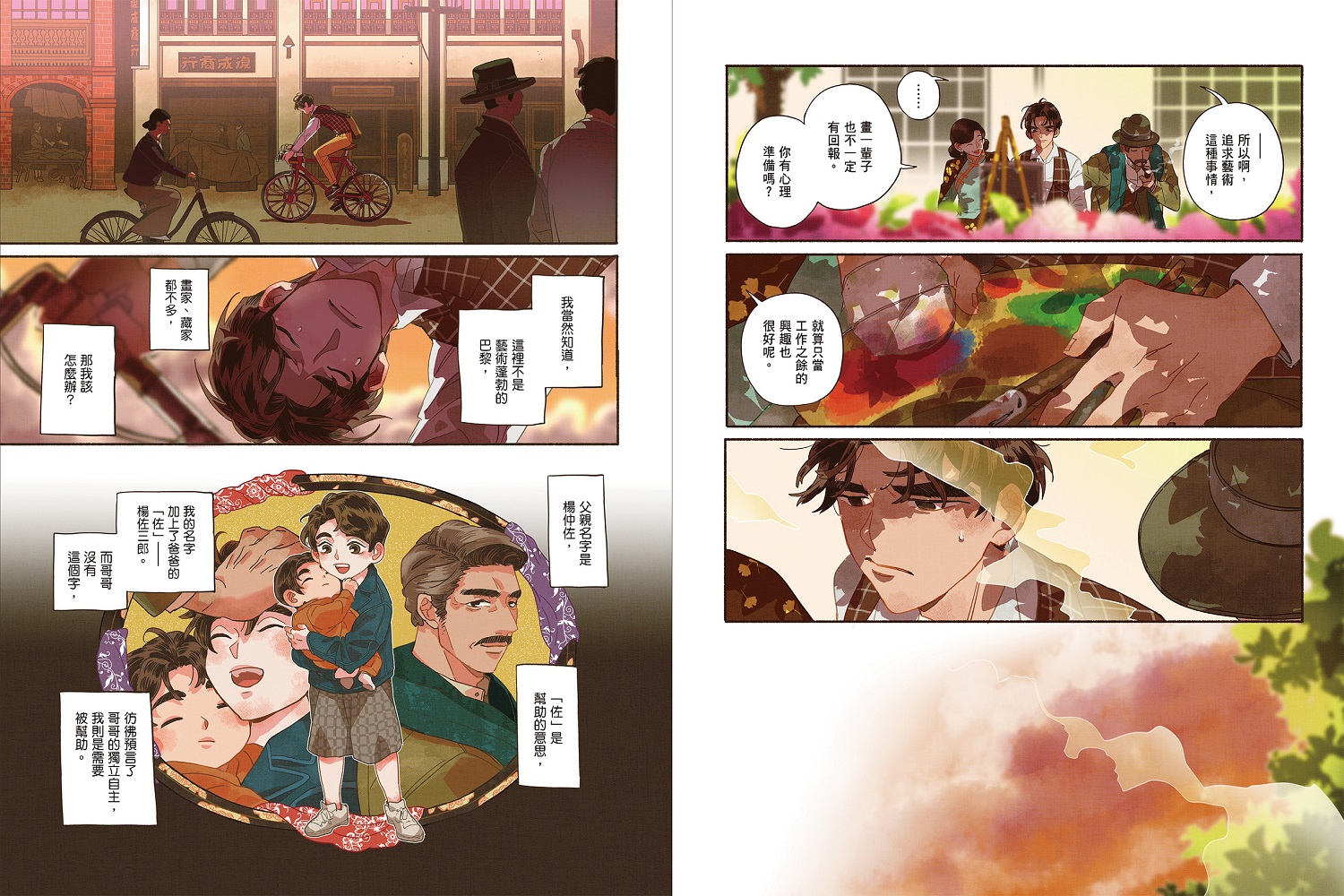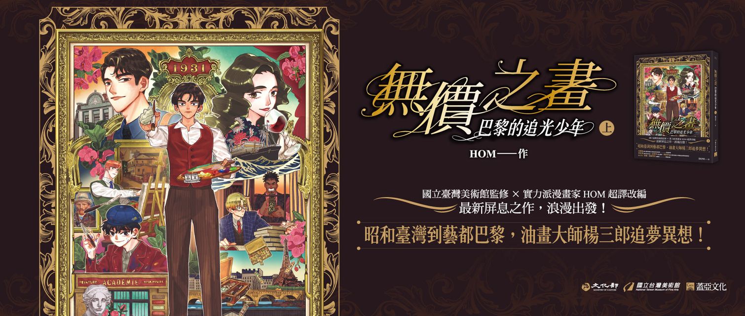 彼時,HOM才剛開始取材。兩年之間,她大量閱讀臺灣藝術史的資料,大學就讀美術系的她,在密集的取材過程中,重新了解臺灣藝術脈絡。兩年後,HOM完成《無價之畫:巴黎的追光少年(上)》,故事描繪主角楊佐三郎如何醉心於畫畫,原本自信滿滿、懷抱畫家夢的少年,在第五回臺展中落選後受挫,因著哥哥的一句警語,他決心赴法學畫,尋找繪畫的意義。