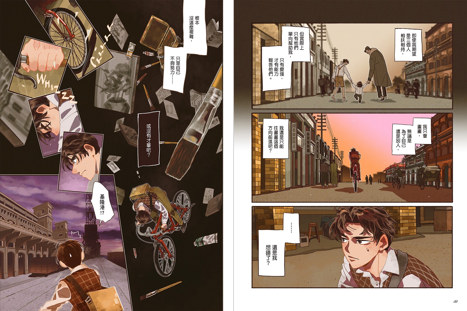 在HOM最喜歡的第32頁裡,幼年的楊佐三郎在父兄的互持下往前走,第二個鏡頭則是楊佐三郎一個人騎著單車往前行,背影看起來有點孤獨。台詞是這樣的:「即使我期望是三個人相扶相持,但實際上,只有他們單向幫助我,只有變強,才有能力報答他們。我只會畫畫,無論是為了自己還是別人,我還是只能往畫畫這個方向前進吧?」