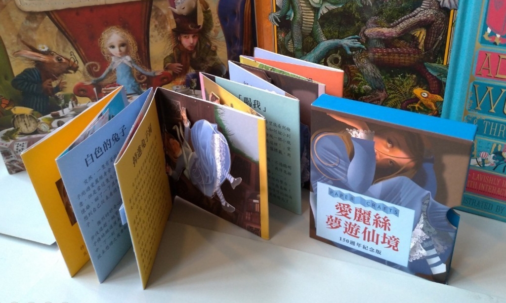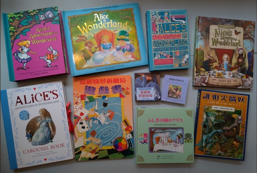 創作者亟欲重新詮釋或演繹發揮自己心中想像的愛麗絲奇境,也是讀者之福。國內創作者王家珠的《愛麗絲夢遊仙境遊戲書》作品(圖片10),畫面細膩童趣具國際水準,可惜已絕版。