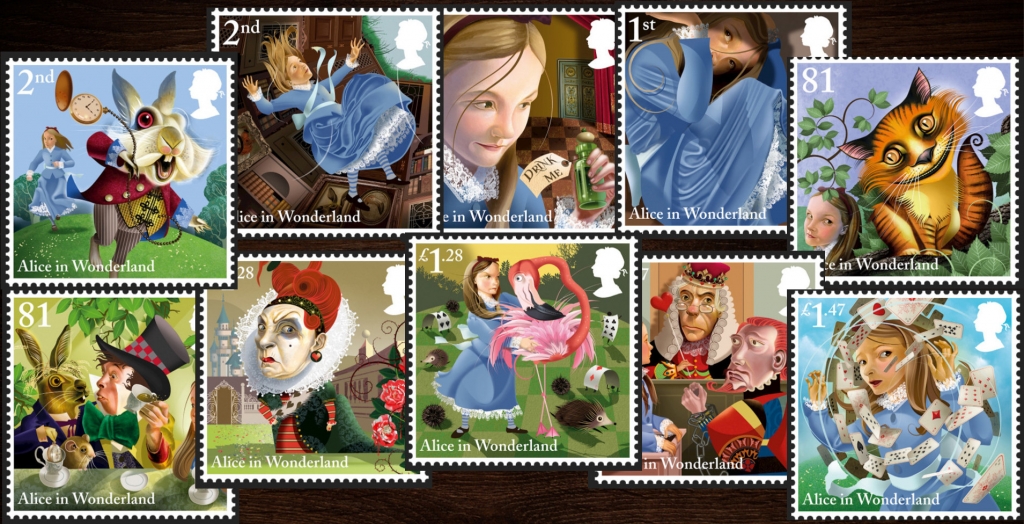 圖片2|《愛麗絲漫遊奇境》出版150周年紀念郵票,英國皇家郵政2015年1月6日發行。