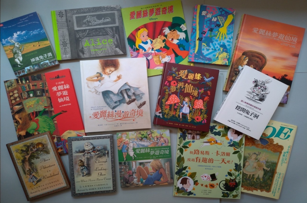 隔年1865年,道奇森委託插畫家約翰.坦尼爾(John Tenniel)為故事《Alice’s Adventures in Wonderland》(愛麗絲漫遊奇境)繪製插圖(圖片4)並出版上市,1871年《愛麗絲鏡中奇遇》出版,成為卡洛爾兩本重要的著作。台灣早期的譯本琳瑯滿目,翻譯的書名分別有「漫遊」、「夢遊」以及「仙境」、「奇境」等各異其趣。(圖片5)