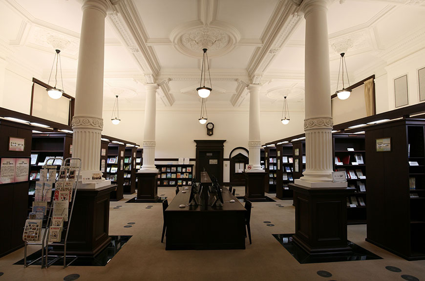 目前館內收藏了日本國內書籍約31萬6千冊,海外11萬8千冊,日本雜誌1836種,海外雜誌191種(2020年)。因應資料與日俱增,而進行了增建,建造時依舊按照明治時期的規劃—讓圖書館環繞著中庭,保留了讓讀者休憩的空間。2015年新建的彩虹棟(arch棟)落成,新舊館合計可收藏105萬冊書籍。增建之後,將原本第一資料室(日本)及第二資料室(海外)的典藏書籍移至彩虹棟,入館需18歲以上,憑證才能入館。