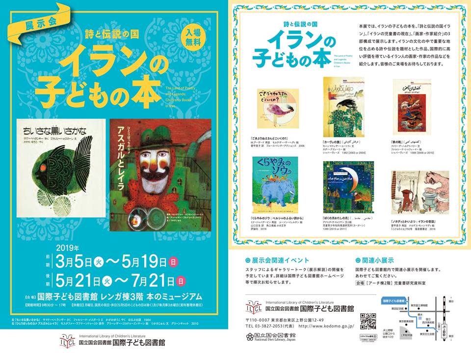 2019年春夏季的展覽是「詩與傳說的國度—伊朗的童書」,內容分為以下幾個部分:伊朗簡介、《諸王之書》、《瑪斯納維》、詩人和繪本、伊朗的民間故事、伊朗童書的現在、伊朗國內兒童文學獎、知名的伊朗童書作家,最後還有一區是介紹文化,比如說曆法、數字、地毯等。