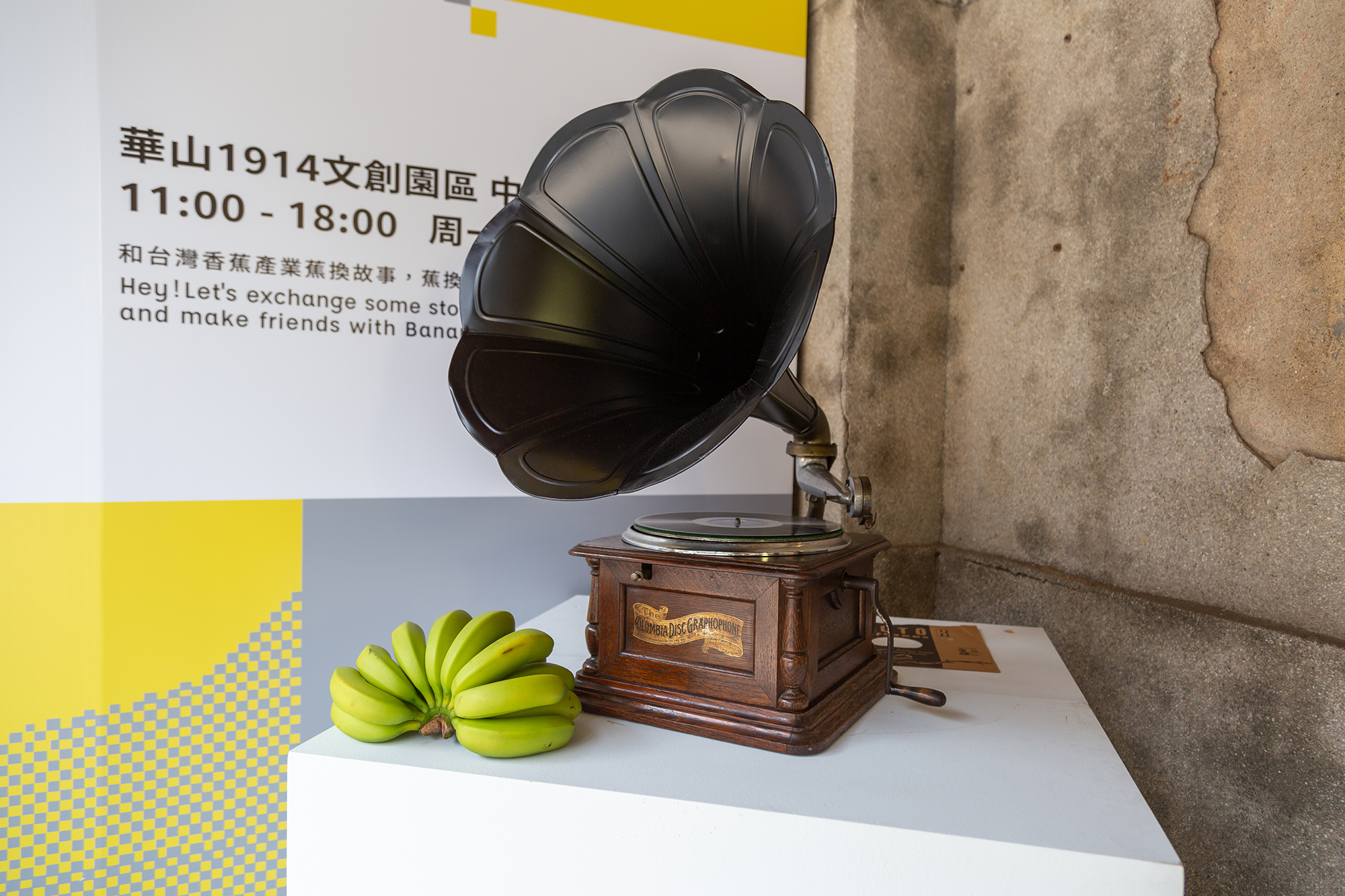 展覽特別邀請藝術家吳玉琴展出旗山蕉園回憶的系列作品,透過寫實的畫風,讓當年的風景得以重現,看見蕉農們昔日的工作樣貌與旗山蕉園的生氣蓬勃;以及台灣知名黑膠、古董留聲機收藏家「金屋藏膠」參與規劃,精選出日治時代至今,跨時代、跨語言的18張蟲膠、黑膠唱片,詳述其中音樂與香蕉的故事。如:Andy Warhol設計的剝皮香蕉唱片,與全世界僅剩兩台、當年受Andy Warhol啟發而生產,高齡五十歲的攜帶型香蕉唱機也將展示於現場。讓我們一起用透過耳朵與眼睛認識不同的香蕉。