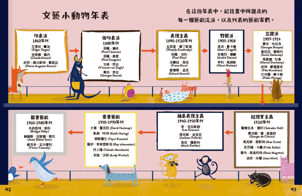 動物們看名畫:以每種動物本身的習性為出發點,並將特性及角色融入藝術作品中。