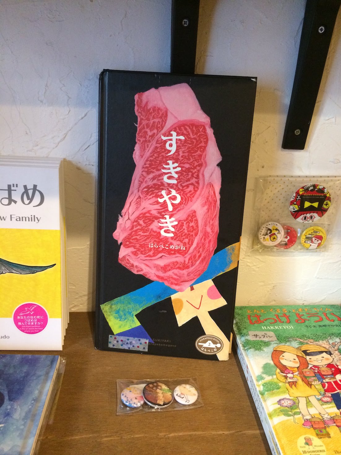 而造訪獨立繪本書店的理由,不外乎是有限定販賣的商品,不然就是為了原畫展或活動而來。會知道彩虹繪本屋,是因為他們不只販賣,還自己出版,想買也只能親自跑一趟。那時我很著迷的畫家是「はらぺこめがね」(肚子餓眼鏡),他們是一對也住在都立大學站附近的夫婦作家,他們並不想只將讀者鎖定在兒童或是大人,如果可以看到實際販賣自己作品的店長也會比較安心,所以對於「直售(寄賣)」相當堅持,對他們而言,「彩虹繪本屋」就是個好選擇。看這對創作者的名字,就能猜出他們的創作多半跟食物有關,這也非常投我所好,所以對他們的作品幾乎沒有抵抗力。